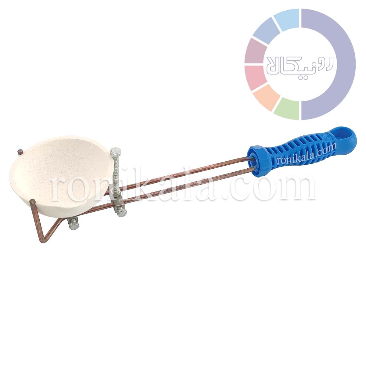 از دسته بوته کاسه ای کشویی جهت فیکس کردن بوته روی آن جهت ذوب و انتقال مذاب به قالب یا ریژه استفاده میشود، قابل استفاده برای بوته های کوچک مانند 300 و 100 گرمی