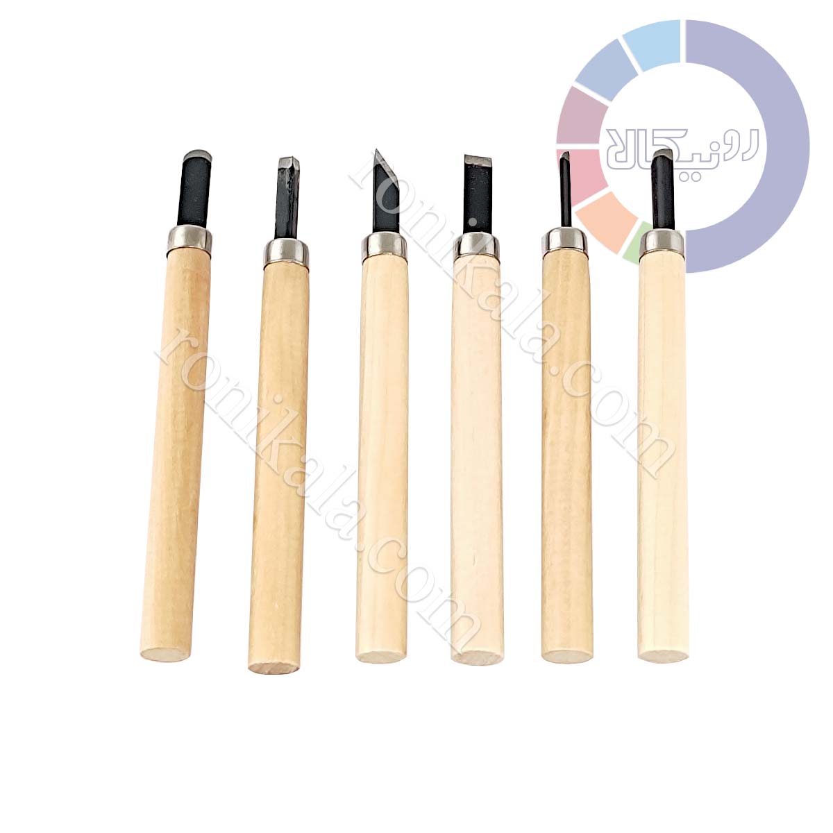 مجموعه 6 عددی مغار WD-6 – مناسب برای ظریف کاری مجسمه سازی , سفالگری , طراحی روی موم و طراحی طلا، جواهر. دسته مغارها چوبی و جنس سری از فولاد تراش خورده با 6 سری مختلف برای طراحی قسمت های مختلف